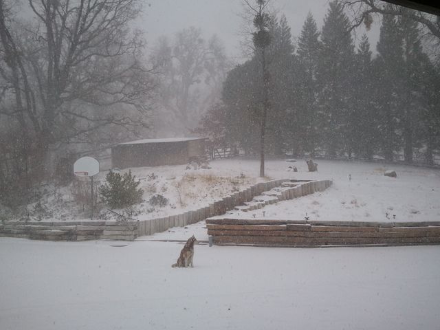 끝없이 나리는 눈발속에 명주가 명상중입니다.