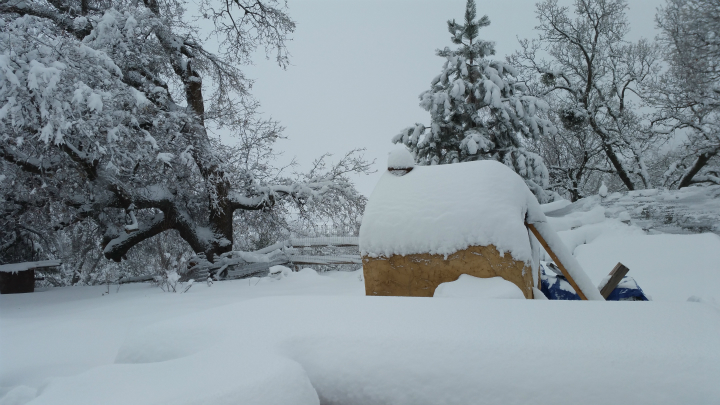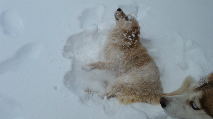 거침없이 눈밭을 헤치고 대문까지 발자국을 내준다.