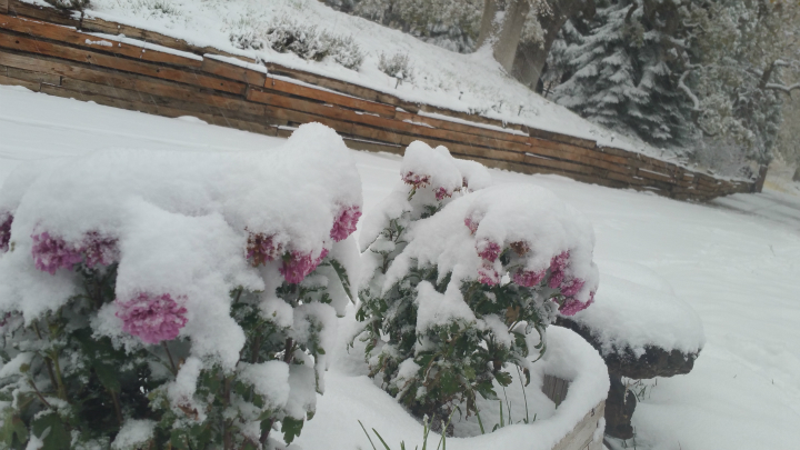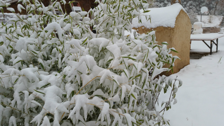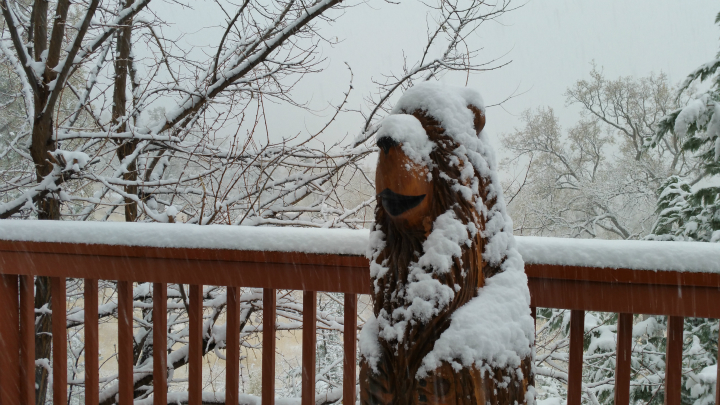 2주 전 곰 아저씨께 오일스테인 옷을 새로 입혀드렸고 ....기다리던 첫 눈이