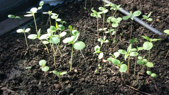 어제 보니 비닐하우스 안에서 잘 자라고 있는 봉숭아 떡잎 위로 본잎이 쏘옥 올랐습니다.