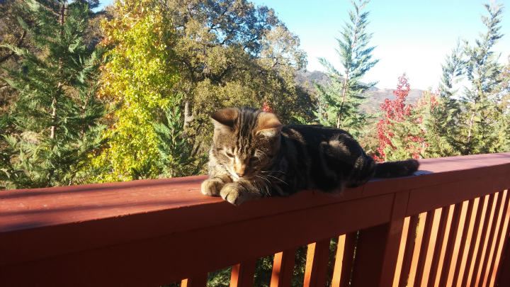 난간에서 재롱을 부립니다.
