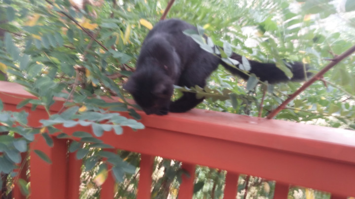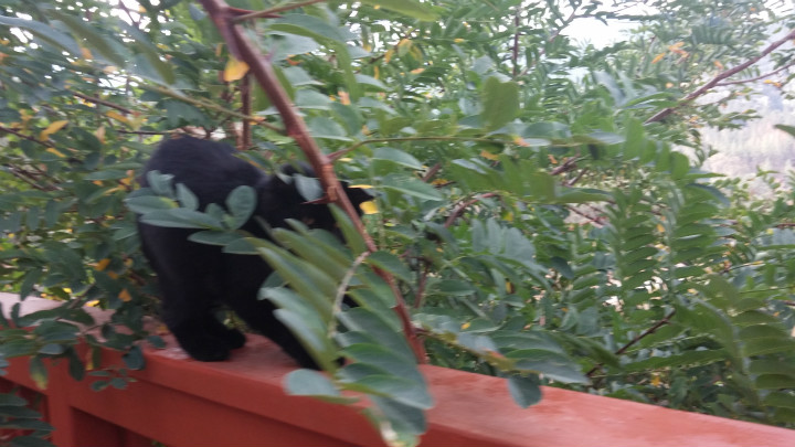난간 위 걷기를 즐깁니다.